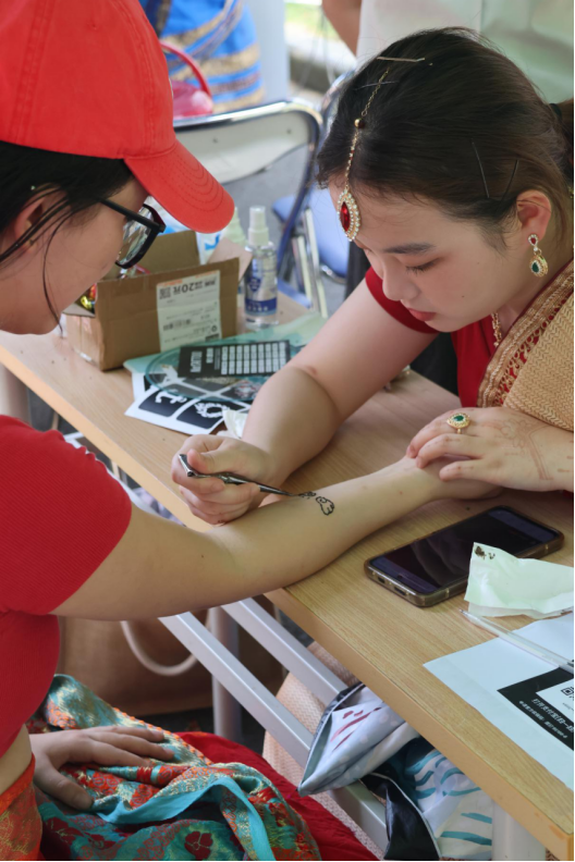 此外,亚非学院还联合双百行动服务队、广外青年乡村振兴促进会在文化节上设置摊位,推介韶关乳源文旅景点、瑶族服饰和瑶药非遗文化。让非遗文化助力乡村振兴,以青年力量赋能乡村振兴,以广外色彩点亮乡间田野。
