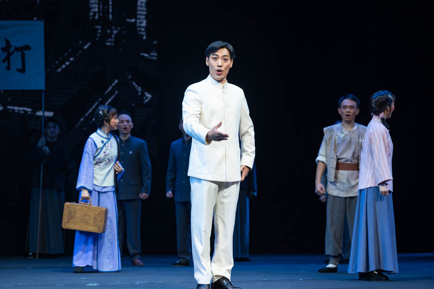 现代粤剧《铁军》以“100位为新中国成立做出贡献的英雄模范人物”、佛山本土革命烈士陈铁军为原型,以陈铁军烈士的成长故事为主线展现一位富家闺秀蜕变成为革命战士的成长历程,展现出革命烈士陈铁军英雄儿女的精神气概,更体现了中国近代革命历史上青年人的价值取向和使命担当。动人心魄的剧情,深深打动、感染鼓舞现场观众。演出结束后,主创团队及演员老师们与现场观众分享作品创作过程中的故事与心得。观众互动问答环节,bat365官网学生积极参与,表达了对粤剧文化创新传承的极大好奇和兴趣。
