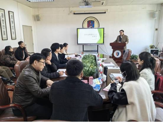本网讯 12月20日上午,全国政协委员、香港立法会议员、香港国际公益法律服务协会主席、广州市律师协会涉外法律服务分会首任会长、律师何君尧受邀来bat365官网交流。商英学院院长胡春雨、党委书记苏冬燕等学院相关负责人、各系主任、法英系全体教师和学工办全体人员参加会议,会议由苏冬燕主持。