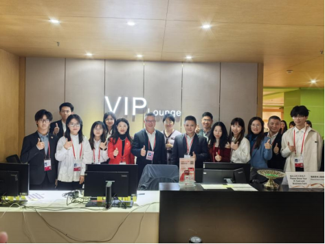 会谈后,谢伟光一行参观了广交会发展史陈列馆,并先后到境外贵宾俱乐部、展馆咨询台、证件中心等工作岗位,亲切走访慰问在岗实习学生。期间,谢伟光副校长与同学们进行亲切交流,听取了他们参与本届广交会实习的感受与收获,勉励大家要始终保持饱满的热情,以扎实的学识和卓越的实践能力投入到实习工作中,将广外学子的优良风貌和综合素质熔铸于行。