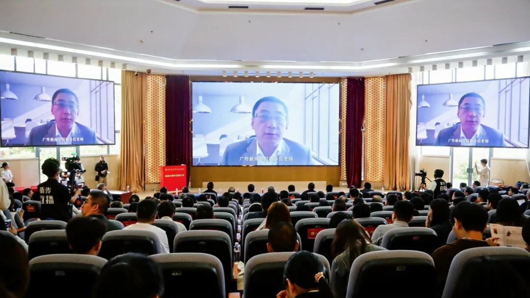 中国新闻史学会会长、中国传媒大学新闻学院院长隋岩通过视频发表致辞,他表示,广外作为国内最早开办国际新闻专业的院校之一,二十年来培养了一大批高素质、复合型的国际传播人才。在人工智能引领人文学科不断创新发展的今天,他期待广外新闻学院在新的征程上不断探索智能时代国际传播理论与实践的创新之路。